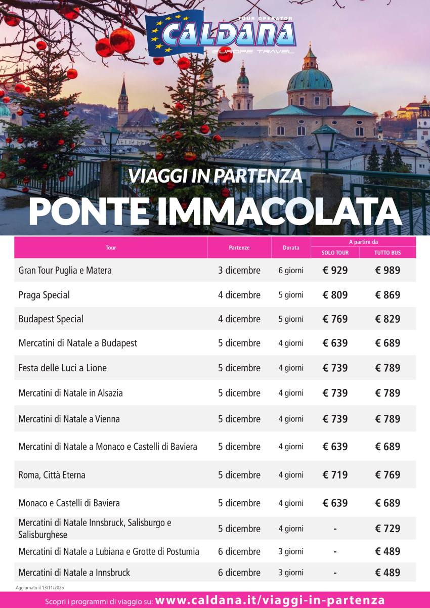 Ponte dell’Immacolata: Ultime Disponibilità per i Tour in Partenza