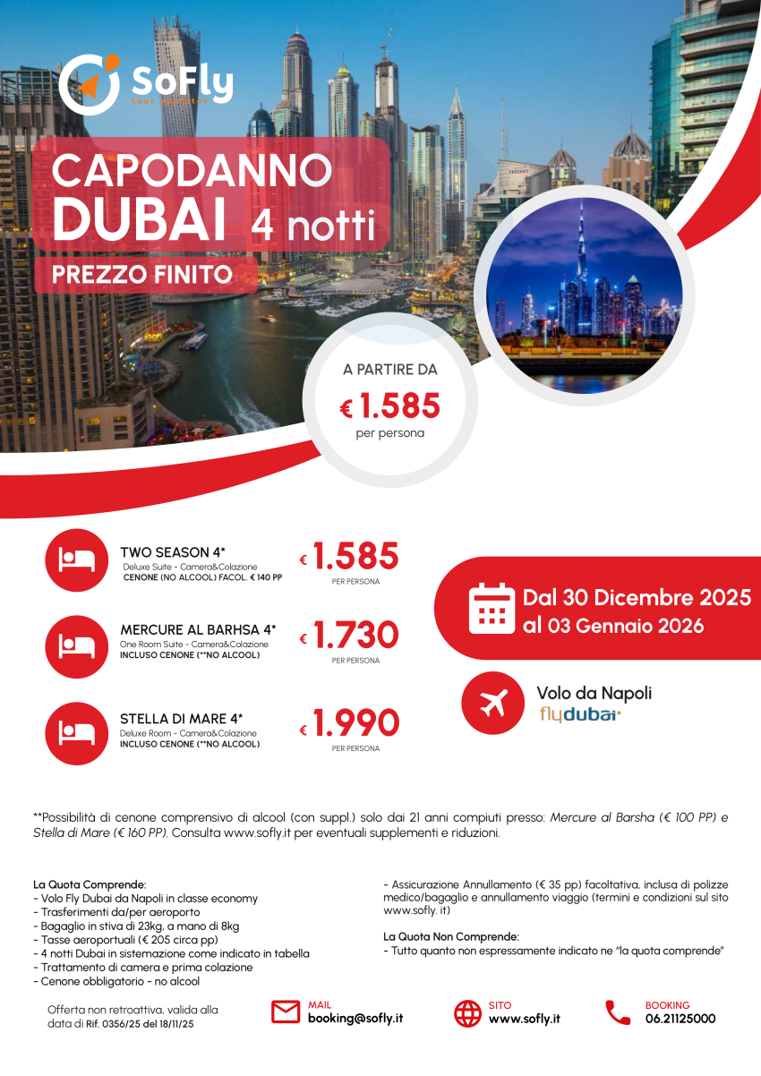 Capodanno Dubai 4 Notti Con Volo da Napoli a partire da € 1585 a persona